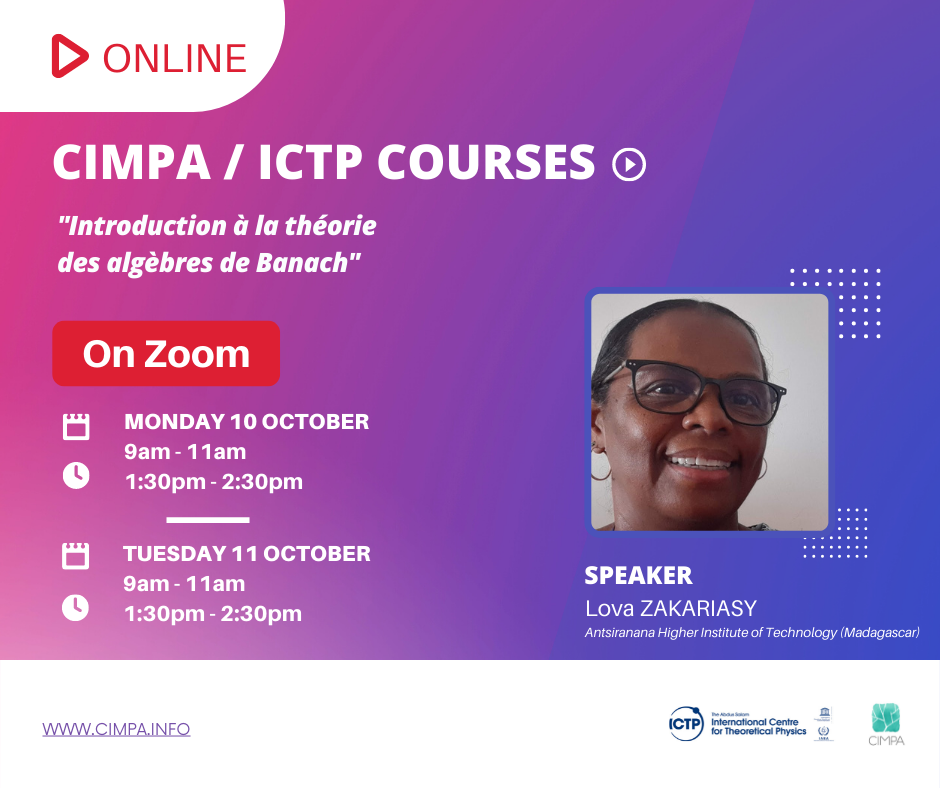 Join Lova Zakariasy's' online course "Introduction à la théorie des algèbres de Banach" from October 10 to 11, 2022.