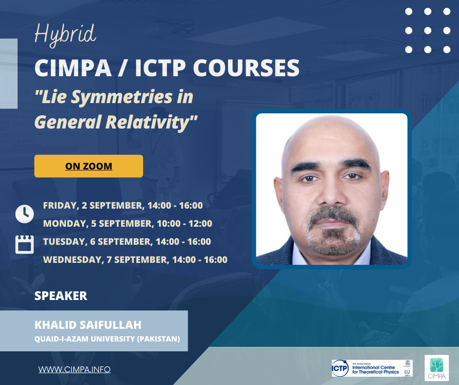 Join Professor Khalid Saifulla's hybrid course "Lie Symmetries in General Relativity" from September 2,5,6,7, 2022.