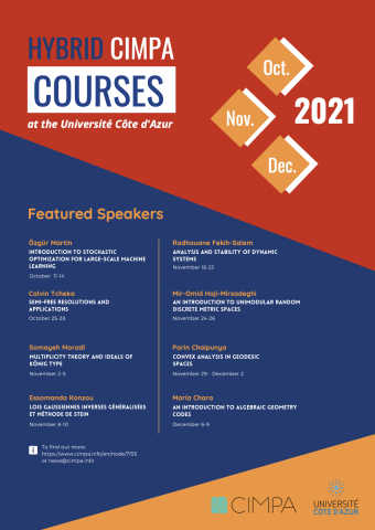 The laureates are also invited to come to CIMPA, on the campus of Université Côte d'Azur, during their stay, in order to record/broadcast a mini-course on the mathematics related to their research theme.