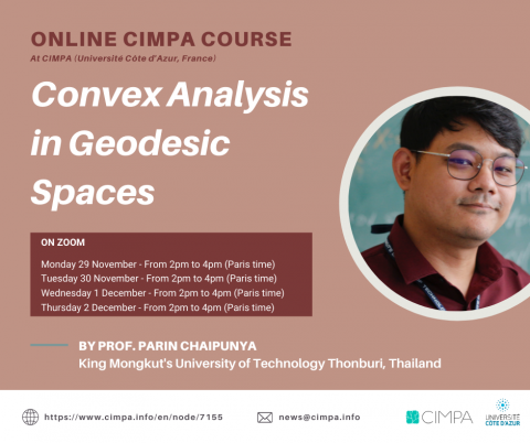 Professor Parin Chaipunya (King Mongkut's University of Technology Thonburi, Thailand) will give a course on "Convex Analysis in Geodesic Spaces" from November 29 to December 2, 2021.