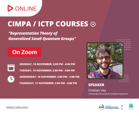 Join Cristian Vay's course "Representation Theory of Generalized Small Quantum Groups" from November 14 to 17, 2022.