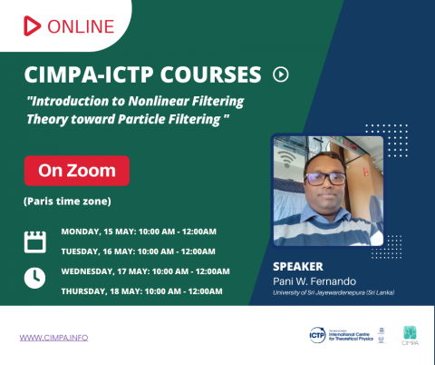 Join Pani W. Fernando's course "Introduction to Nonlinear Filtering Theory toward Particle Filtering" from May 15 to 18.