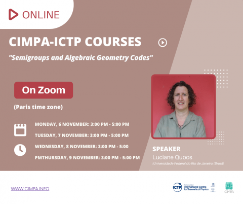 Join Luciane Quoos's course "Semigroups and Algebraic Geometry Codes" from November 6 to 9.