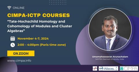 Join Umamaheswaran Arunachalam's online course "Tate-Hochschild Homology and Cohomology of Modules and Cluster Algebras" from November 4 to 7, 2024.