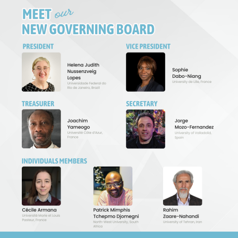 The board is completed by three individual members with complementary profiles: Cécile Armana (Université Marie et Louis Pasteur, France), Rahim Zaare-Nahandi (University of Tehran, Iran), who continues his commitment as an individual member, and Patrick Mimphis Tchepmo Djomegni (North-West University, South Africa).