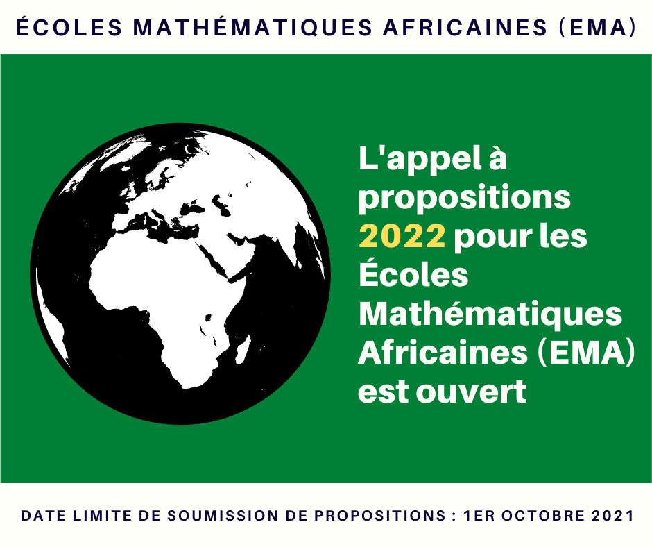 L'appel à proposition 2022 pour les Écoles Mathématiques Africaines (EMA) est ouvert. Plus d'informations ici.